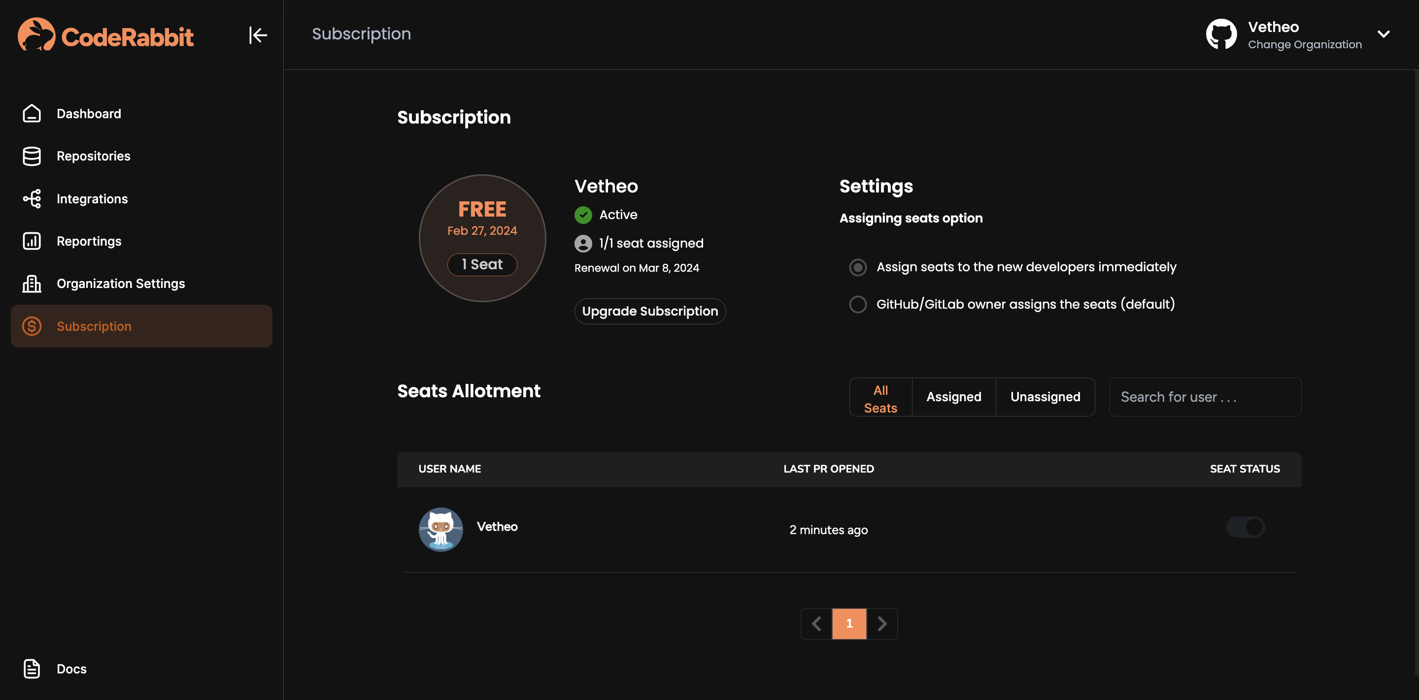 • CodeRabbit Seats Every developer who submits a pull request is counted as a separate seat. Seats can be purchased for all or for a limited number of developers.